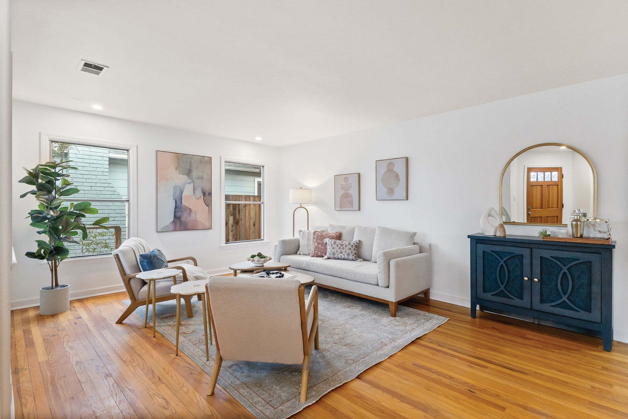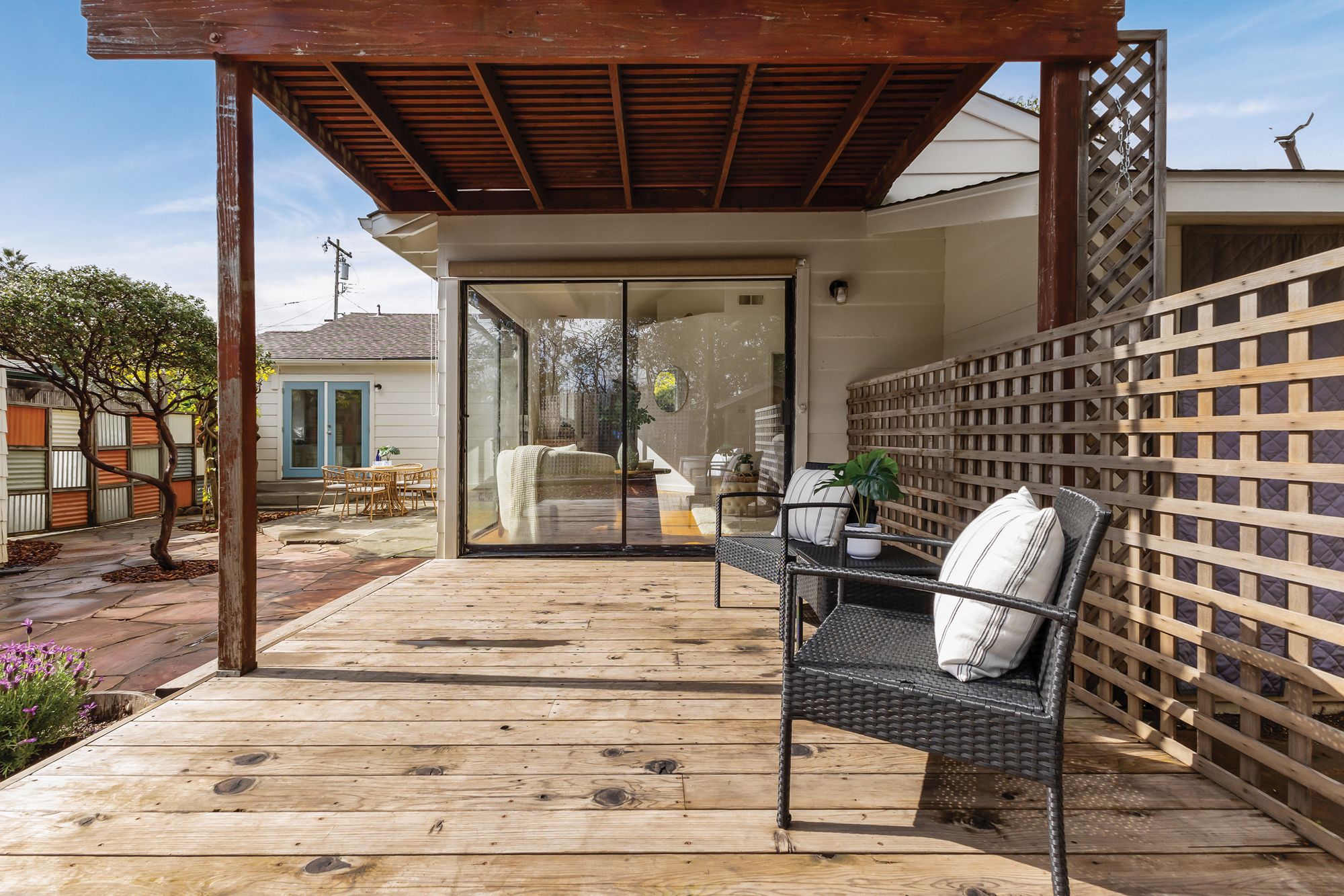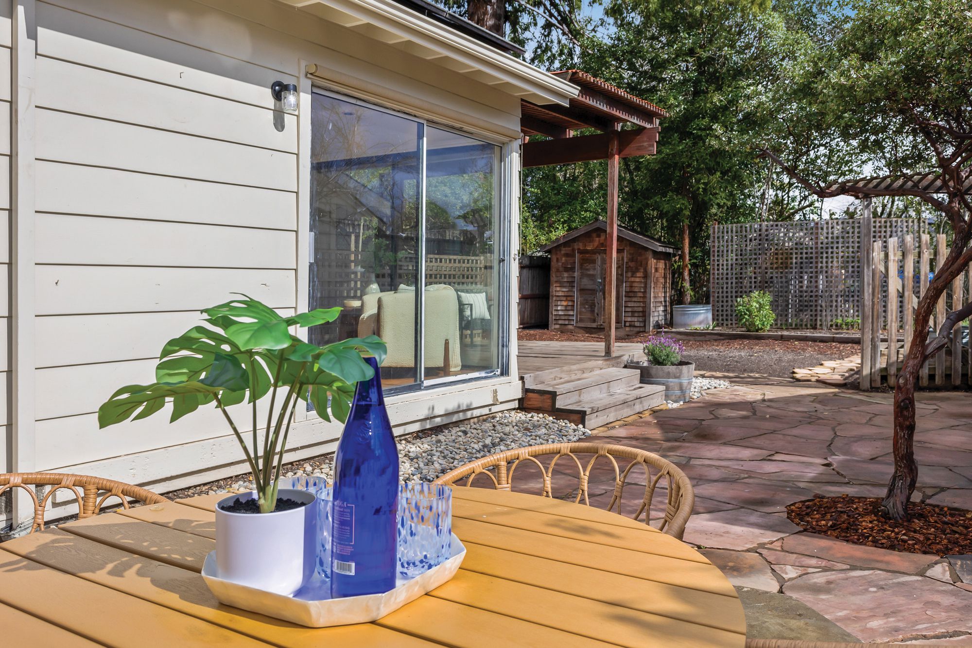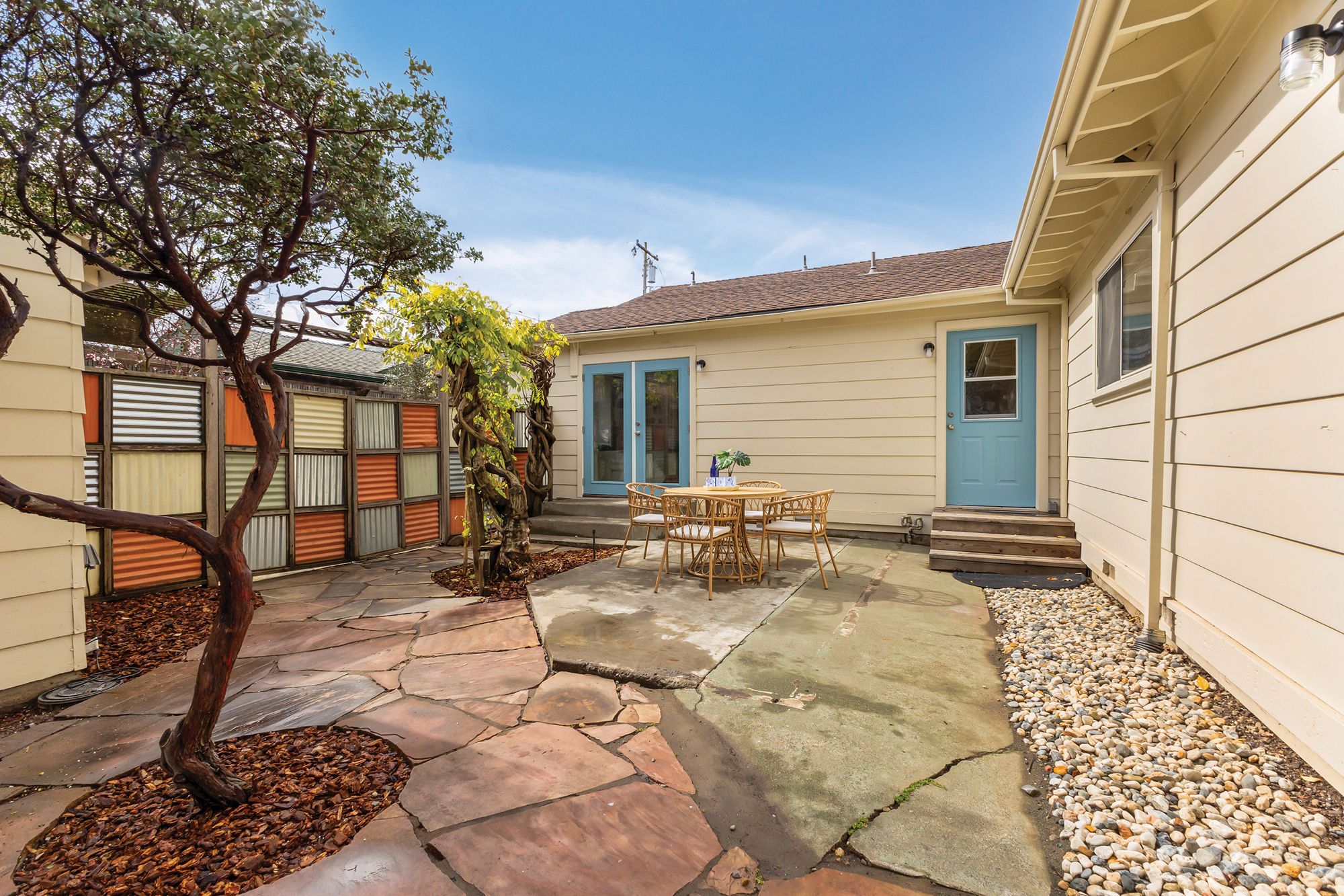 Welcome to the coveted J.C. neighborhood, where tree-lined streets, classic architecture, and a strong sense of community create one of Santa Rosa's most beloved settings. This charming single-story 3 bedroom, 2 bathroom home offers approximately 1,658+/- sqft of thoughtfully updated living space that blends timeless 1940s character with modern comfort. Inside, natural light fills the home, highlighting original hardwood floors, fresh interior paint, and inviting spaces designed for both everyday living and effortless entertaining. The updated kitchen features quartz countertops, a spacious pantry, and easy flow into the main living areas perfect for gathering with friends or enjoying quiet mornings at home. Owned solar enhances energy efficiency and long-term savings. The primary suite addition offers a peaceful retreat, complete with vaulted ceilings, skylights, a walk-in closet, and direct access to the expansive backyard. Whether hosting summer dinners, gardening, or simply unwinding outdoors, the generous yard provides endless possibilities for enjoying Sonoma County's indoor-outdoor lifestyle. Adding exceptional versatility, the detached permitted ADU (400+/- sqft) has its own address, private gated entrance, and fenced yard. Ideal for guests, extended family, creative workspace, or income potential, it includes a full kitchen, full bath, walk-in closet, separate washer and dryer hookups, and efficient heating and cooling. Located just moments from downtown Santa Rosa, neighborhood parks, local dining, and shopping, this special property offers the rare combination of historic charm, modern flexibility, and an unbeatable location in one of the city's most desirable neighborhoods.
